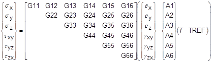 | Gij | Elements of the 6 x 6 symmetric material property matrix in the material coordinate system. | Real | Required |