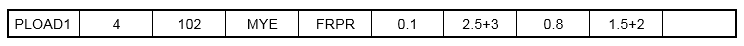 | TYPE | Load type, one of the following character variables: FX, FY, FZ, FXE, FYE, FZE, MX, MY, MZ, MXE, MYE, and MZE. | Character | Required |