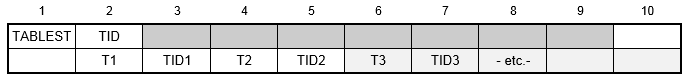 - TIDi must be unique with respect to all TABLES1 and TABLEST table identification numbers.