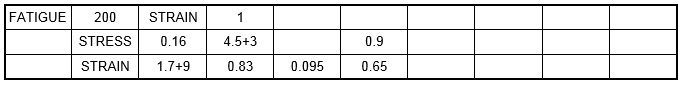 | EF | Coefficient of fatigue ductility. See Remark 4. | Real > 0.0 | See Remark 2 | |||