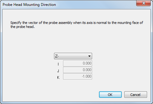 - In the Probe Head Mounting Direction dialog, select an entry in the drop-down list to specify which machine axis the head is parallel to.