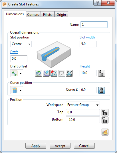 Slot position — Select an option from the list to specify the position of the slot relative to the profile curve.