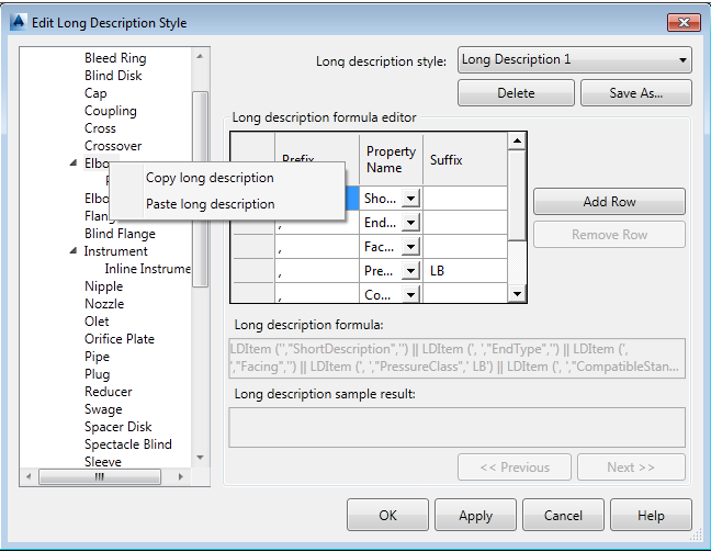 Lists all parts in an expandable hierarchical tree. If you right-click a part, you can copy the long description. If you right-click another part, you can paste the long description.