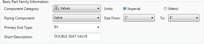 - In Basic Part Family Information, click a component category (for example: Valves).