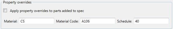 - On the Catalog pane, select Apply Property Overrides to Parts Added to Spec.