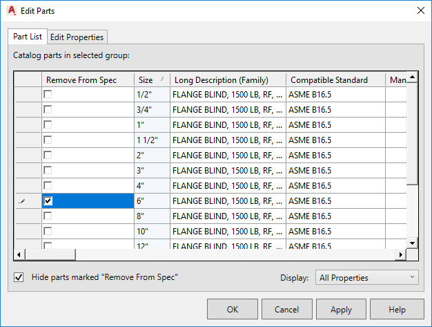 - In the Edit Parts dialog box, click the Edit Properties tab.