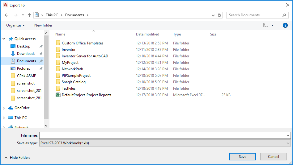 By default, reports are exported to your documents folder.