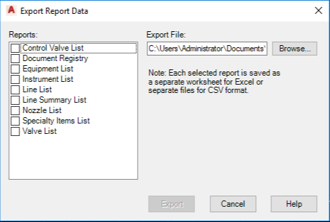 The Export button only becomes active when you select one or more report types and have specified an export file.