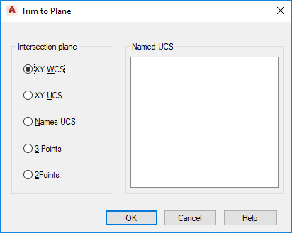 Specifies that the XY plane of the named user coordinate system defined and saved in AutoCAD is used as the cutting plane.