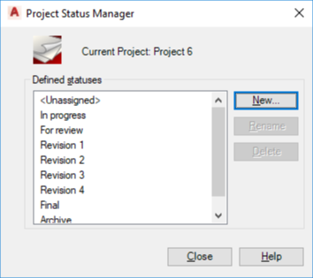 Lists the statuses that have been defined for the current project. You can add, rename, and remove statuses from this list in this dialog box. The default status list includes the following: