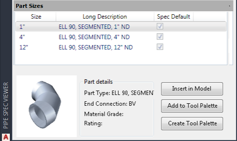 Create a component. Specify the piping component class and other fixed properties of the new component. Specify component geometry and set an initial size range for the part. Add the part to a catalog. Select the part in the catalog browser.