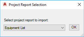 - If you are importing XLS data at the Project Reports level, the Project Report Selection dialog box is displayed. In the Select Project Report to Import list, select the report you want to import. Click OK.