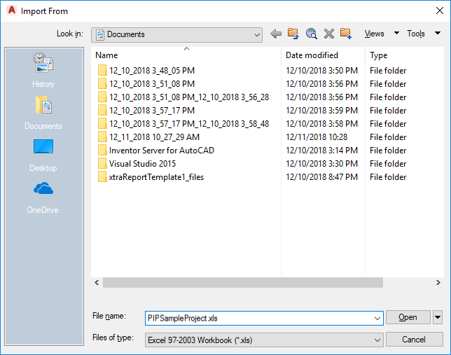 Note: If you are importing an Excel spreadsheet, you can import to the Project Reports node or to an individual report node. If you are importing a CSV file, you can import only to an individual report node. In either case, the data imported must match the node chosen, valve data to a valve list and equipment data to an equipment list, for example. Otherwise the data is ignored.