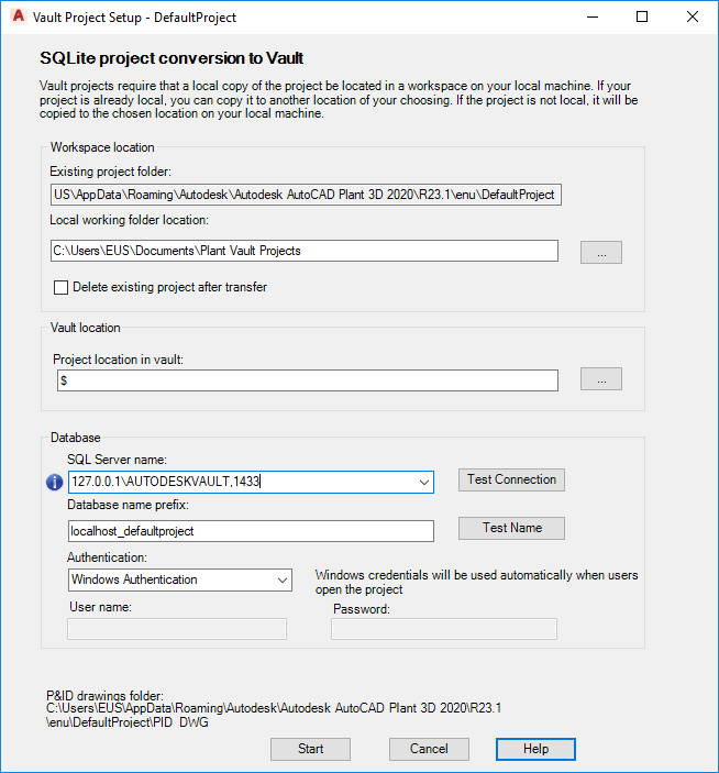 Vault projects use SQL Server for the plant database. If your project is using the default (SQLite) format it is converted to SQL Server during migration.