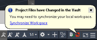 Files that are locked in the working folder cannot be updated from the vault. Before refreshing from the vault, you can use the Project Manager to close and reopen the project. Closing the project unlocks files that are in-use in the drawing session (for example, piping spec files that are locked as you route pipe).
