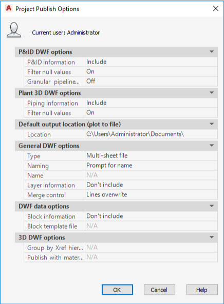 Specifies whether P&ID related data gets included with the published DWF file output.