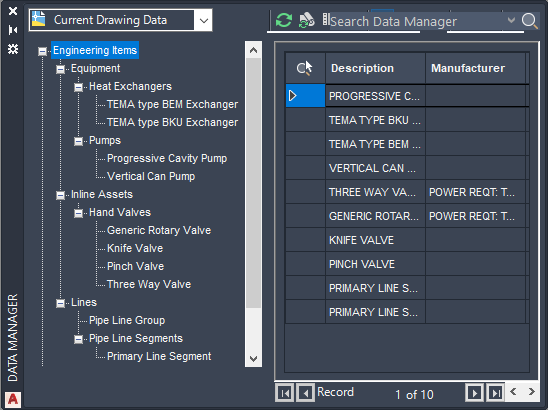 Using the Data Manager, you can export data for drawings and projects, modify the data externally, and import it back into the Data Manager.