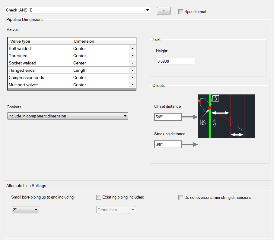 - Under Gasket Handling, specify whether to dimension gaskets individually, not at all, or to include them with component dimensions.
