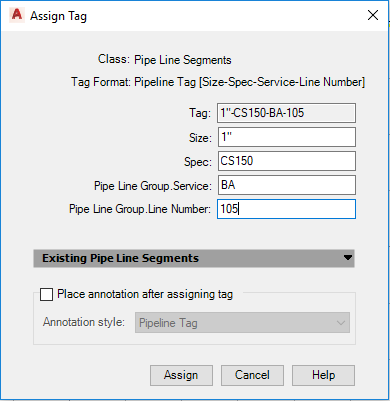 6. In the Assign Tag dialog box, in the box labeled Number, enter the line number (for example: 105).