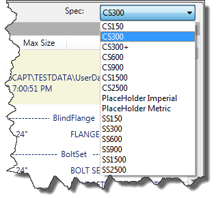 In the Spec Viewer, in the Spec list, click a pipe spec (for example: CS300).