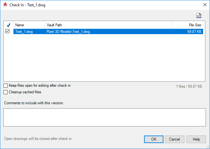 3. If the drawing you are checking in contains references other files (vault related files), you can select the check-in column for additional drawings.