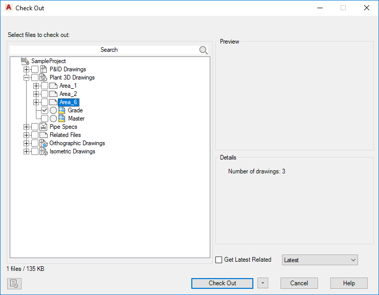 3. If other the drawing contains references to other drawings (vault related files), you can select them if they are not already checked out.