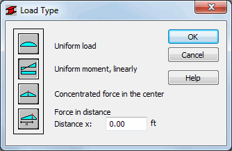 Click the relevant icon in the Load Type field in the Manual Verification dialog, or in the Member definition - additional parameters dialog. The following displays: