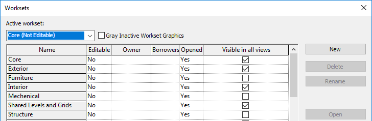 This global setting defines the default behavior for each workset in project views. You can override the visibility of each workset for individual views.