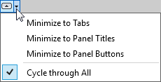 | specify the preferred method for minimizing the ribbon | to the right of the ribbon tabs, click the right arrow and select the desired behavior: Minimize to Tabs, Minimize to Panel Titles, Minimize to Panel Buttons, or Cycle through All.
