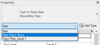 - In the Type Selector, select the type of stair you want to create. You can change the type later, if required.