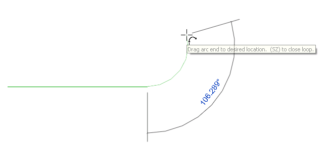 To create an arc from the center and end points, first specify the radius for the arc, and then specify the angle. You cannot specify an arc of more than 180 degrees using this method, although you can modify the arc after you draw it.