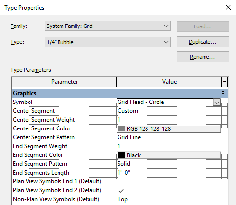Customize grid lines by modifying the Type Properties for the grid type.