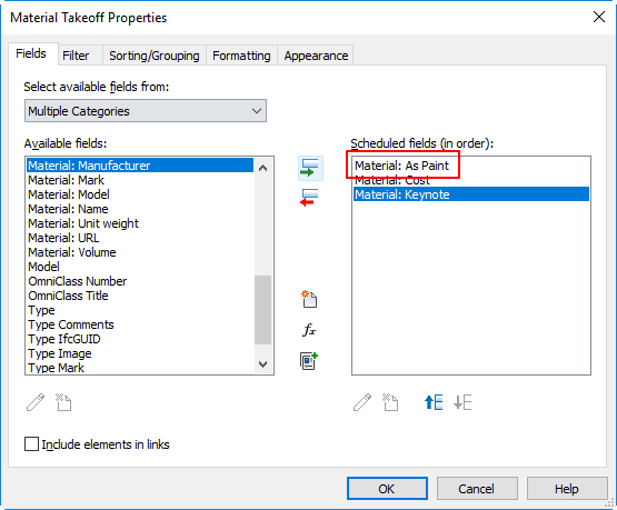 - For quantity reporting and scheduling, materials that are applied with the paint tool are distinguishable from those that are used as the body material of host object elements.