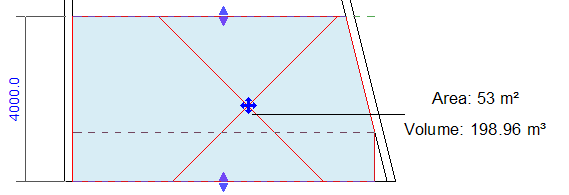 For example, the following drawing shows a section of a room with a sloped wall. The dotted line across the lower part of the room indicates the current computation height. (This line displays when you select the room.) Revit uses the perimeter of the room at the computation height when computing the room area and volume.