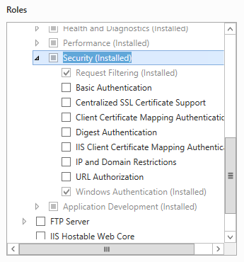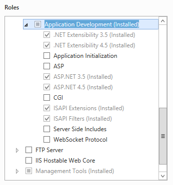 - On the Server Roles section, select the following Roles (SQL 2012 shown):