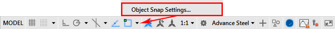 Note: To access the Drafting Settings dialog, click on the small arrow next to the Object snap command in the bottom right side of the workspace and select Object Snap Settings: