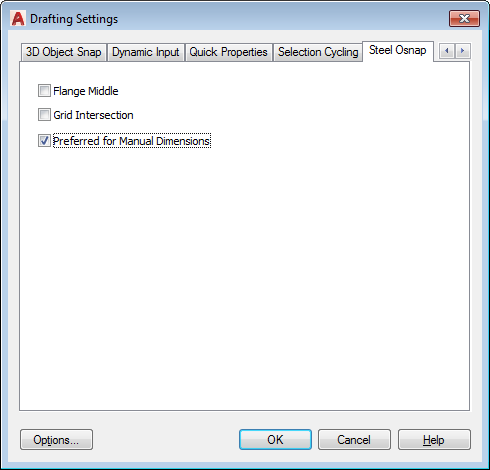 This option is available while creating or editing Advance Steel dimensions. You can manage the checkbox of this snap point by accessing the Drafting Settings AutoCAD dialog Steel Osnap tab: