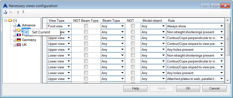 If the default is enabled, Advance Steel uses the default filter configuration. You can create other filter configurations and save them using the Necessary View Wizard, located in the Output tab