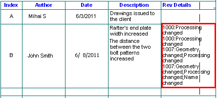 | Rev Details | Some revision tables may contain the Rev Details column. Advance Steel will automatically complete this column with a generic description of the changes on the drawing. |