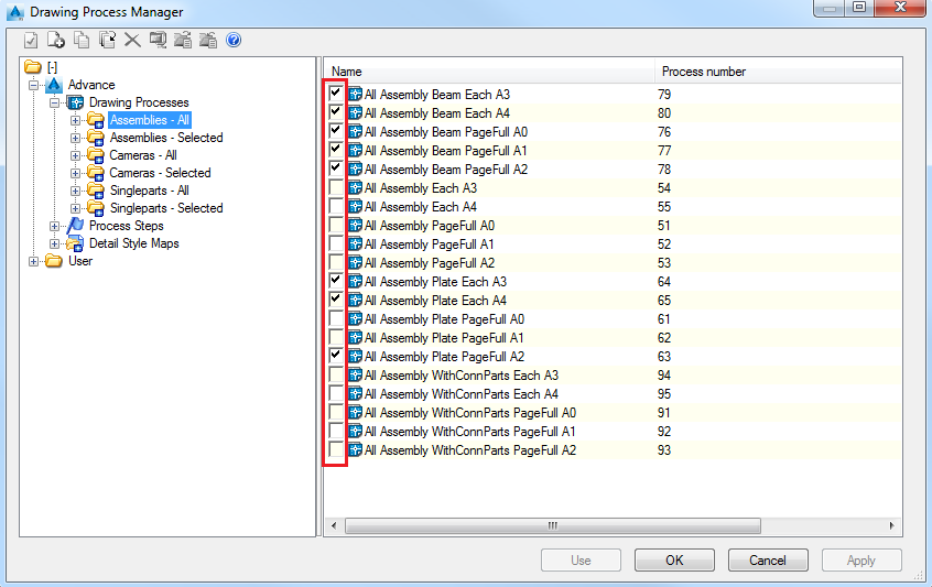 - From the right side of the window enable the check box in front of the drawing processes you want to display in the Drawing Processes palette .