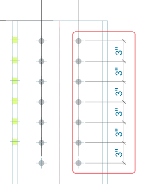 - If one of the selected holes is the first or the last hole, then during update Advance Steel will remove all the intermediary dimensions.