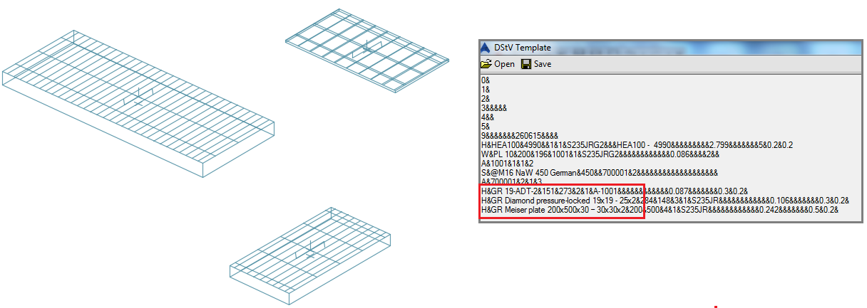 This DStV BOM configuration applies to all types of gratings (standard, bar and variable).
