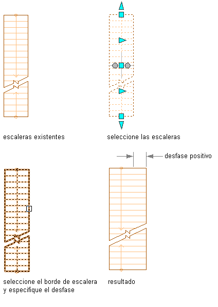 Nota: Si cambia la anchura de la escalera tras haber desfasado un lado, los cambios de desfase se perderán.