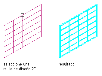 Utilice este procedimiento para crear un muro cortina a partir de una rejilla de diseño 2D. Si ya dispone de rejillas de diseño 2D en el dibujo, puede convertirlas fácilmente en muros cortina. Asimismo, si ya sabe cómo utilizar las rejillas de diseño, es más práctico usarlas para crear los muros cortina y después probar los diferentes comandos de muros cortina para aprender a usar el resto de sus funciones.
