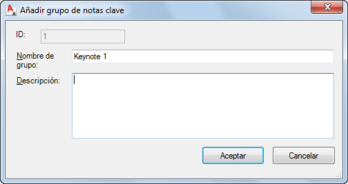 Se abre el cuadro de diálogo Propiedades de nota clave, en el que aparece el identificador de base de datos de la nota clave que está editando en el campo de sólo lectura ID.