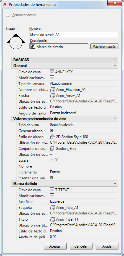 Nombre General Configura un nombre predeterminado para las vistas de espacio modelo creadas por esta herramienta. Puede modificar el nombre configurado en la herramienta al insertar la llamada en el dibujo.