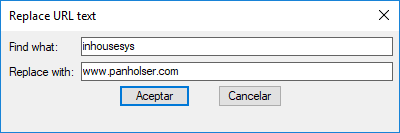 Se puede especificar una dirección URL completa o una parcial. Por ejemplo, puede reemplazar todas las referencias de hipervínculos .com por .net, o bien puede sustituir una dirección URL interna por una de un sitio web externo en una única operación.