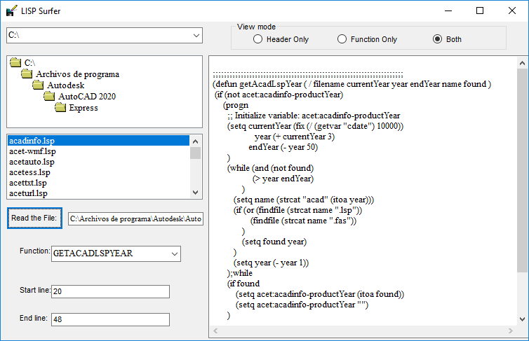 Muestra el contenido de un archivo de AutoLISP por funciones individuales.