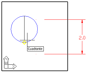 Por ejemplo, para alinear un círculo en un espacio modelo con una cota en el espacio papel, siga estos pasos: