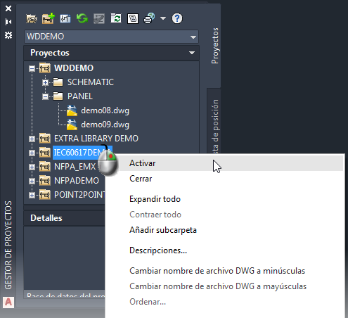 Se pueden tener tantos proyectos abiertos en el Gestor de proyectos como sea necesario, pero solo puede haber un proyecto activo a la vez. Las funciones de todo el proyecto solo procesan los dibujos del proyecto activo.